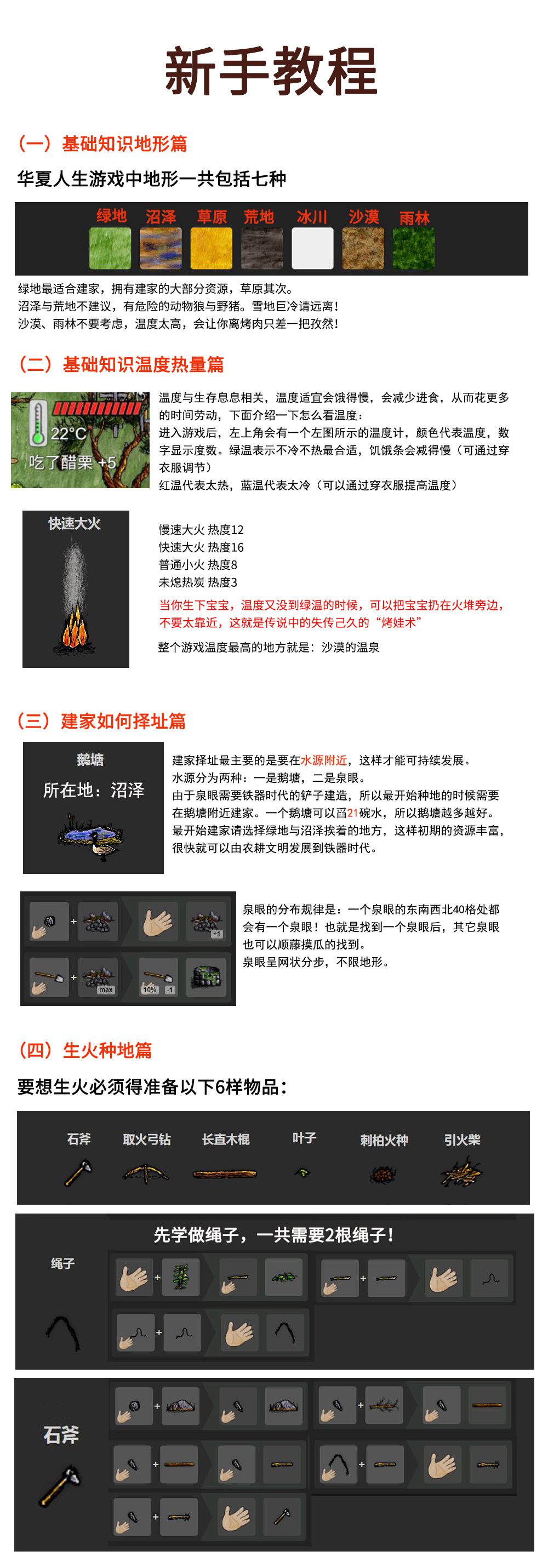 主要介绍游戏界面、操作一些基本知识,还有生火、烧碗、种地、烹饪等。