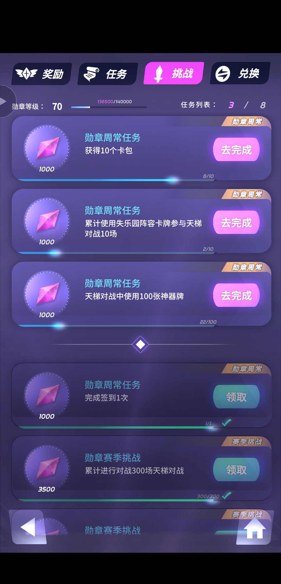 这个失乐园打十场天梯的任务一直没动,一开始以为是文本写错了,我五个阵营轮流打了一遍还是毫无动静,也不知道我这个两场哪来的
