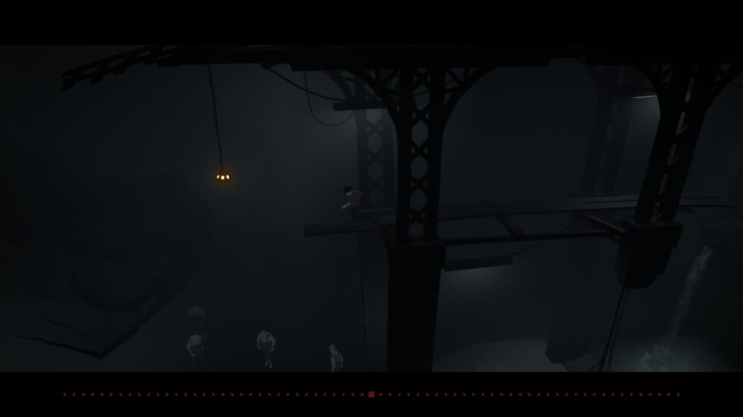 沿着梯子向上爬→右行至尽头→抓住左拉→成功