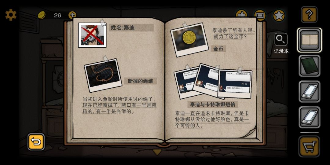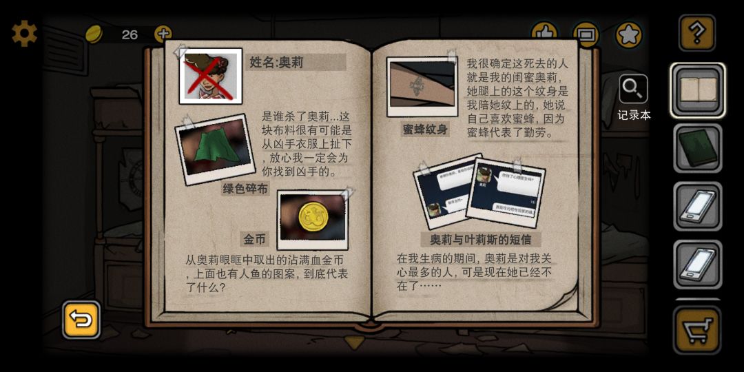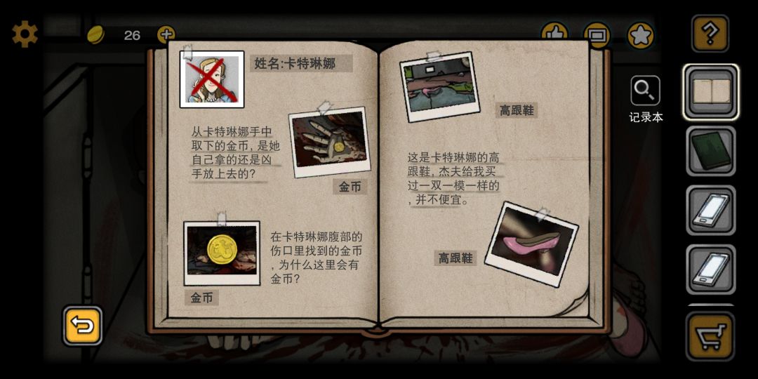 全部线索啦~ 把这些都找齐之后就可以把渣男逮捕归案啦 但是结局那句话感觉很有意味 也许 人是“我”杀得呢?虽然感觉这个猜测很无厘头 但还是觉得结尾有什么别的意思_(:з」∠)_