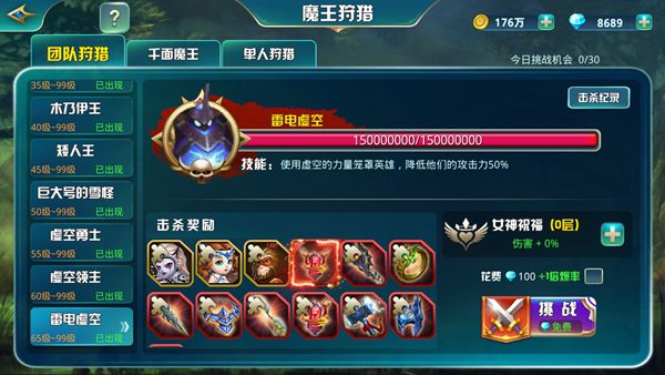 殿下可以通过每日挑战不同等级的魔王获取珍惜武器碎片和高阶英雄碎片,每个魔王技能不同,需要根据技能调整阵容才能获得最大收益哦~