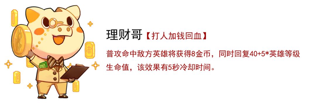 在团长和副团长的选择上顺风耳和普通远击的选择相同,副团长除了茶壶精外选择的理财哥也可替换为芭蕾喵或其他副团长,因为理财哥的在普攻命中敌方后不仅有回复效果还能加钱,在前期对线时比较划算,所以腿毛最近比较喜欢用~