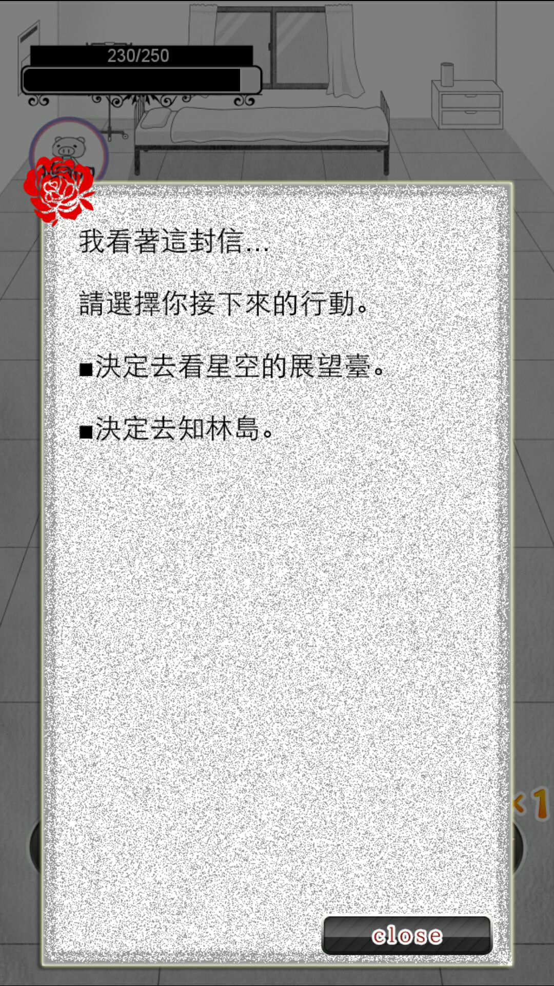 我选了去知林岛,达成结局后就重新开始了,啊啊啊好想知道另一个结局和剩下的画啊,可是不想再玩一次啊。
