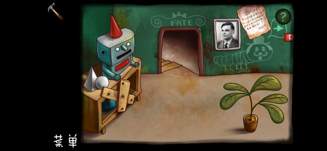 右行墙上得照片,给机器人得旋钮,给左边机器人,得到图谱