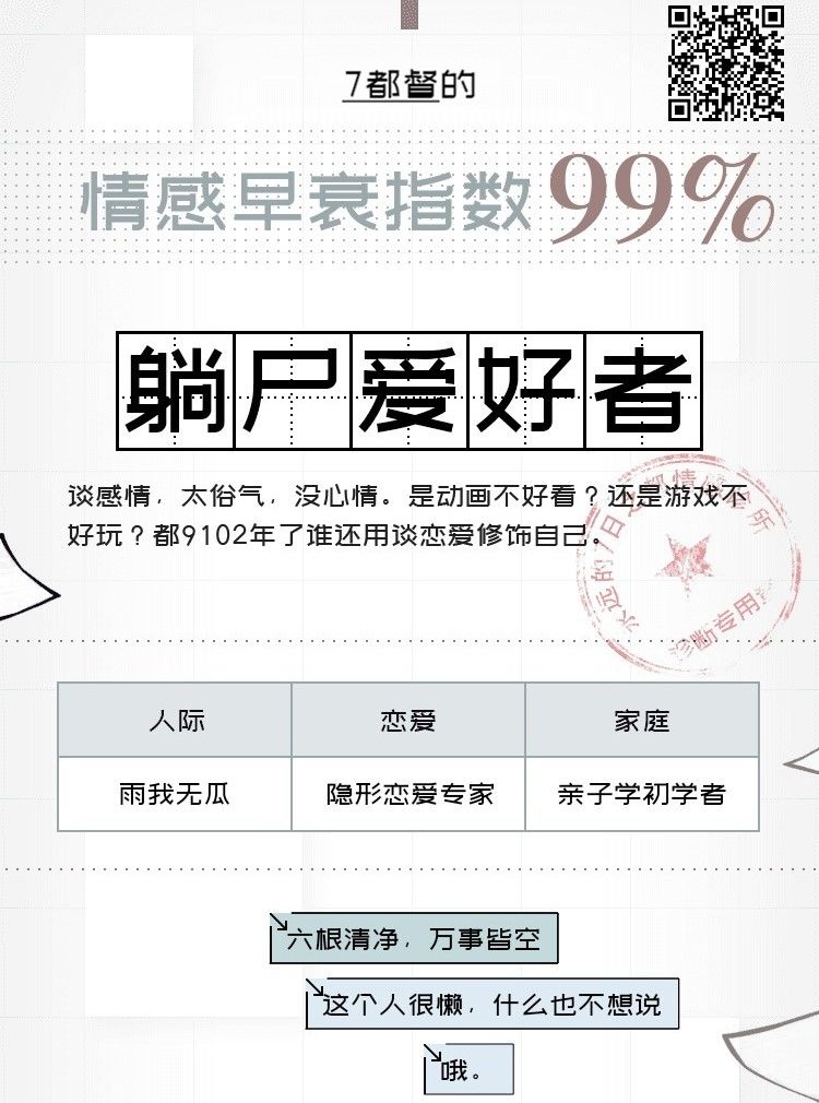 来自7都督的诚挚安利,扫描下图中的二维码或者点击情感早衰诊所