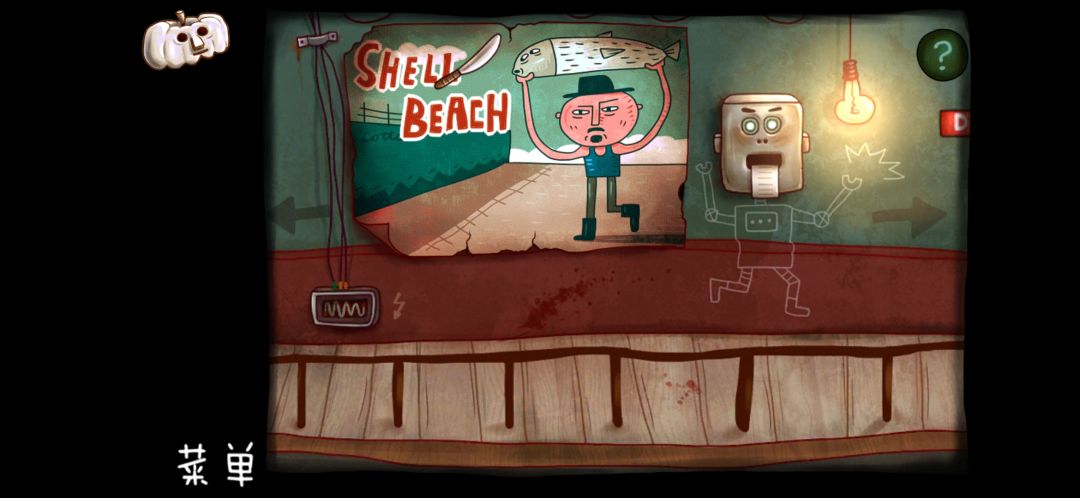 用小刀划破右边的画报,把南瓜头扔进去