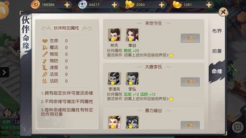 伙伴有着自己的职业属性,而且各伙伴之间还可激活增加队伍属性的命缘羁绊。所以如何搭配各类职业,激活哪一类型命缘,重点培养哪几位伙伴都是大家需要认真考虑的内容。