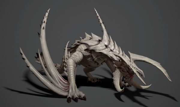 1.1 来自地狱的苍白使者,寒灭之潮的幕后主宰,拥有着统治级的力量,同时展现出了不亚于人类的智慧,在兽群中拥有极高的身份和威严,人类的最大危机即将到来。残留的幸存者报告表明黯骨龙通体灰白,块头不大,却对其他巨兽有着无形的压制力,周身骨刺嶙峋,巨大的骨刺尖全部呈现苍黯色。黯骨龙凌厉的攻击会扬起浓浓黑烟,动作迅猛而强劲,游骑兵精英也无法与其正面交战,被其黯化骨刺击中的游骑兵也会很快被黯色的不明物质覆盖,在黑雾中挣扎着死去,唯有那些强力游骑兵似乎可以借助自身攻击维持常态,不被黯骨侵蚀。黯骨龙之名正是源自这散播绝望的黯化之骨。
