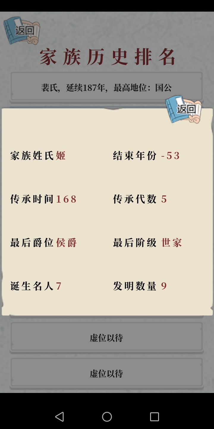 玩了几天,建立了四个家族:姬、裴、颜、姜。