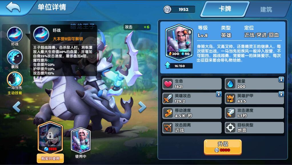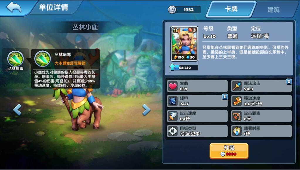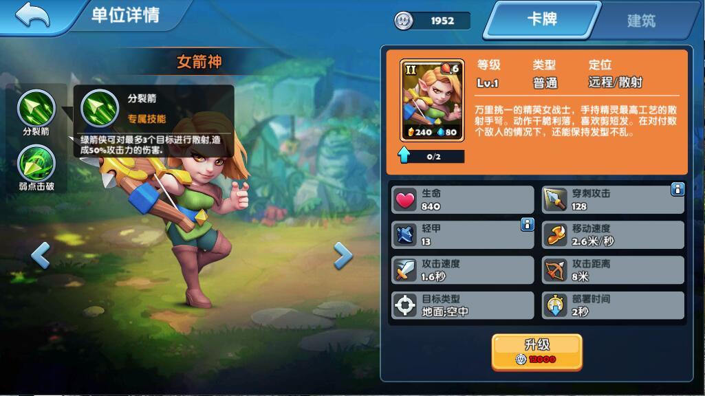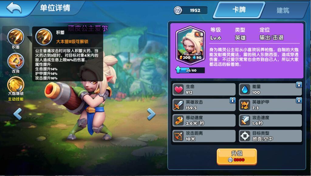 然后攒资源升级二本,英雄先招并且强化,先招先有攒大招,要是优势就直接招炮车,集合队友准备一波,均势和劣势就招小鹿魔法弓箭手,不用强化被动,就是升级到三本的梯子而已