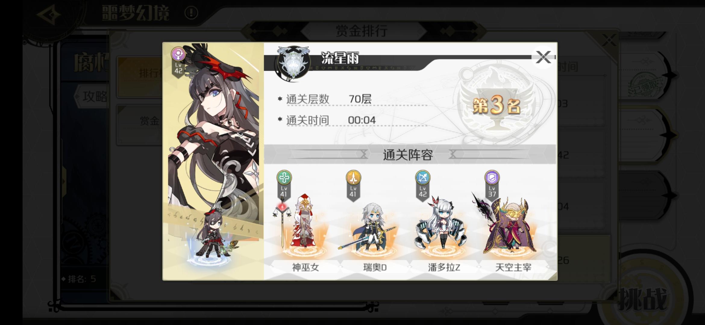 近来很多录像都坏了,但是还是有点开回放看的习惯,昨晚打到第四就睡了,早上醒来成了第五。好奇翻了下排行榜,前面多了个流星雨,点开一看万战魔导只有42级,然后70层四秒通关,就想看下他63怎么打的,结果发现连回放都没有??虽然缺乏实锤证据,但过快的通关速度与过低的配置实在难以令人信服,希望官方能够处理下。