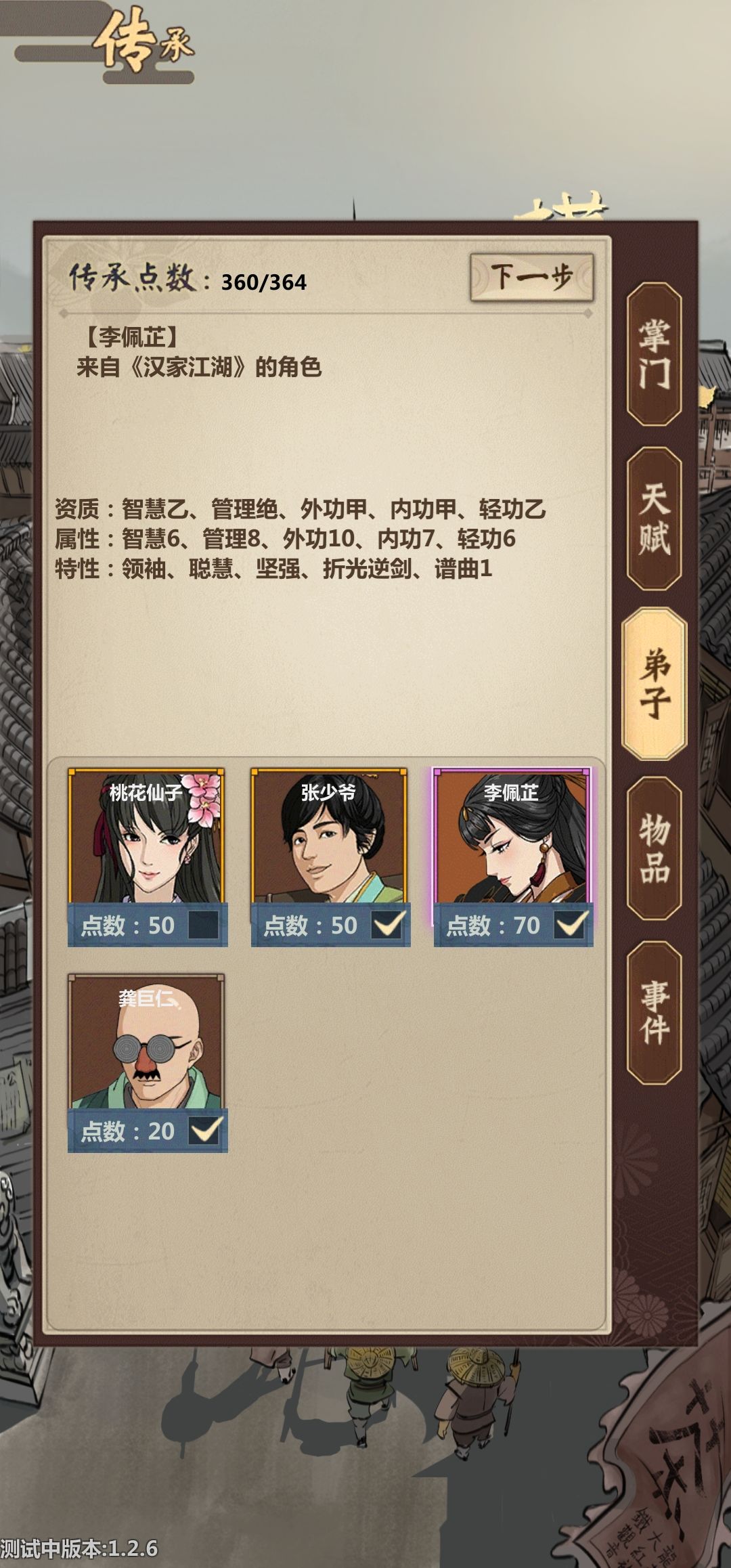 准备主角刷声望,战斗工具人是用开局的桃花仙子,还是门派的谁?能保证打完传承任务的