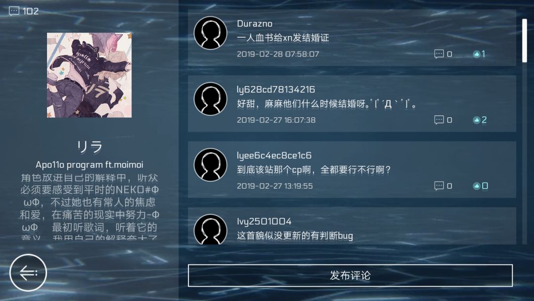 neko赛高!曲师为neko量身定制的歌曲,风格十分贴合neko在剧情中的人设,即叛逆又可爱。歌曲节奏感简单清晰,很容易就跟着抖动身体,反正我对这类歌曲是没有抵抗力了。Voicer的声音处理非常到位,电子风十足,就是开头有一段貌似鼻音的一部分小编感觉有点不适,但高潮部分真的好的没话说。