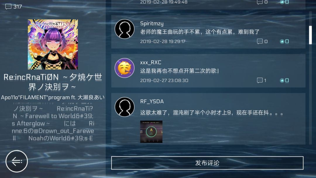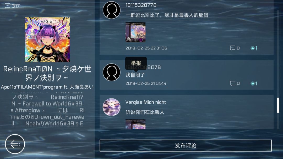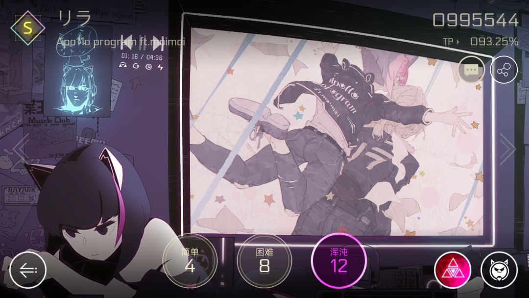 1.9版本魔王曲,也是整个CytusⅡ难度最高的曲。这里小编由于领悟到了人生真谛而自闭故不想谈这首歌的难度,只从歌曲质量出发。一开始没想到neko会有这种曲风的歌,感觉更像是Xenon风格,不过确实是一首极具创造力的音乐。两位完全搭不上边的Voicer能碰撞出如此强烈的火花不得不佩服创作者的才华。前半段流行风女声实在太惊艳了,紧接着的歌剧式的女低音仿佛是在积攒能量,然后流行风再爆发如此交替……什么,听说你们在比谁丢人?