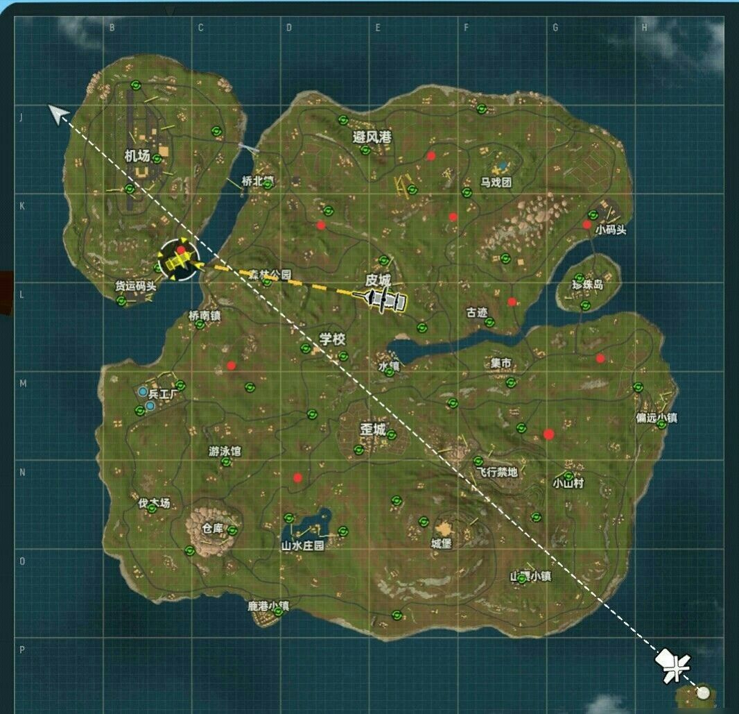 这里建议最好的跳伞距离是1000m(也就是离目标点一个大格左右),这样跳伞基本比别人快;也可以选择900m跳伞,视角拉到与地面呈45度角飞。