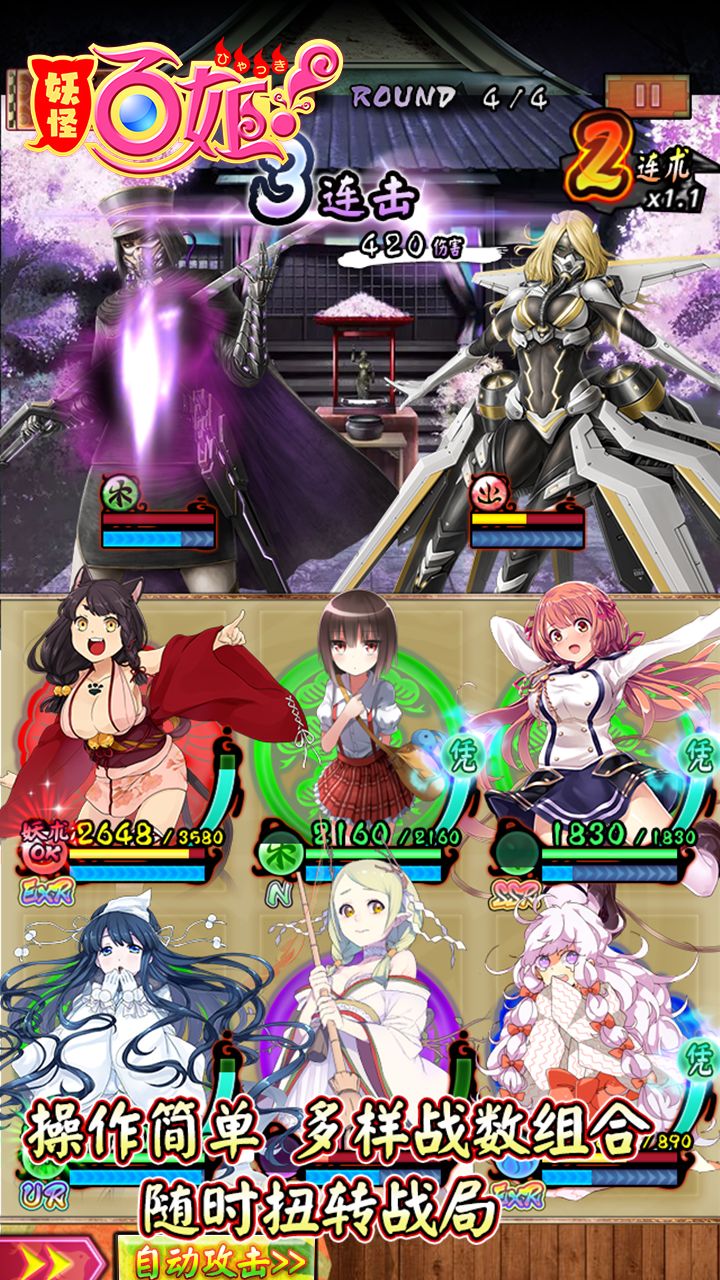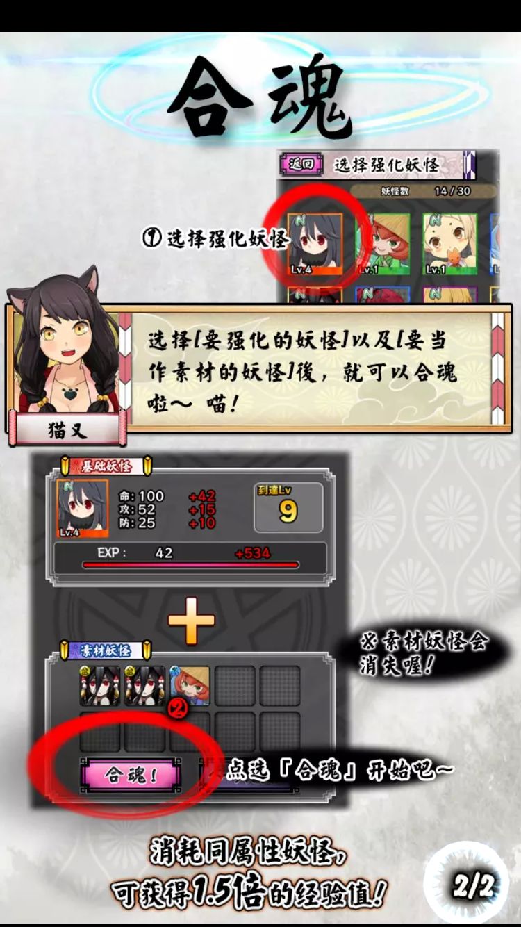 玩家还可以让牺牲一只妖姬的灵魂依附在另一只妖姬身上,就是“合二为一”的概念,被附身的妖姬不仅稀有度上升,外形和战斗力也会变更华丽和更强,各项能力也会回复全部HP值,不是单纯的卡牌放置而是有多元化的策略组合,使得战斗体验上升一个档次!