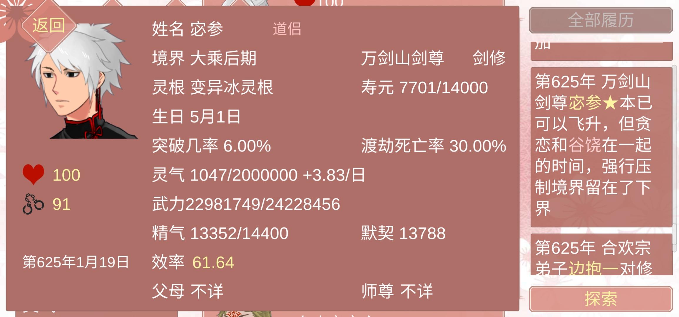 那个人人都有的剑尊,我手滑和他结为伴侣,本来想着他修为那么高了,多堆点资源让他飞升就不会阻挠我后面继续钓鱼。然后我紧赶慢赶把他的突破率堆到一百,绝对不会死绝对会飞升的时候——