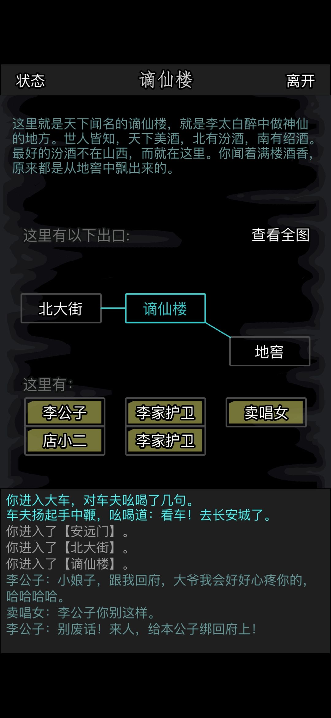 今天本想去城内逛街 偶遇一纨绔想强抢民女 本少侠顿时看不下去把他的小弟教训一番(不费吹灰之力) 后被报复 几个大汉把我团团围住 但本侠丝毫不慌 一招天地熔炉杀得他们片甲不留 最后纨绔跪地求饶 还说自己父亲说某某某 可是本侠也非怕事之人 为了不让少女继续被调戏还是顶住巨大压力干掉了纨绔 然后避免别人的报复 留下杀人者_李斯雯(本来就是大魔头)便甩袖离去 在关外碰到盗墓鼻祖 准备带我升棺发财。。。。。。。。