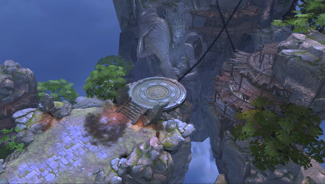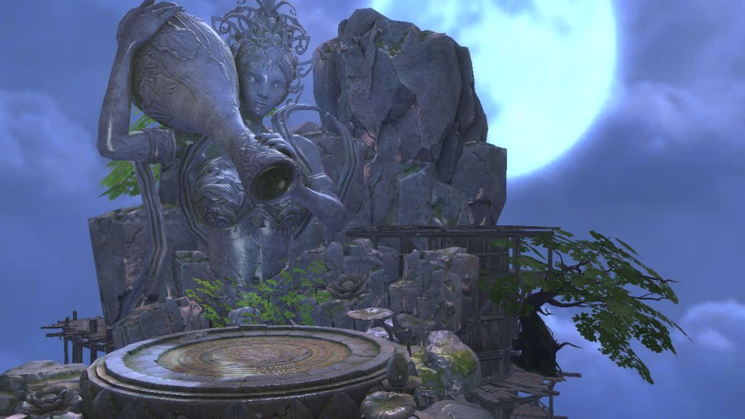 望月神坛:神坛在一悬浮神岛之上,茂盛的劲松为其平添许多生机,月光洒在圆形圣坛上,光滑的表面像是泛起了油光,再添神圣色彩。虽不是神像却与神像相呼相应,有一根通天绳索与其相连,持平圣母便在其身后,置身其中仿佛真能通灵!
