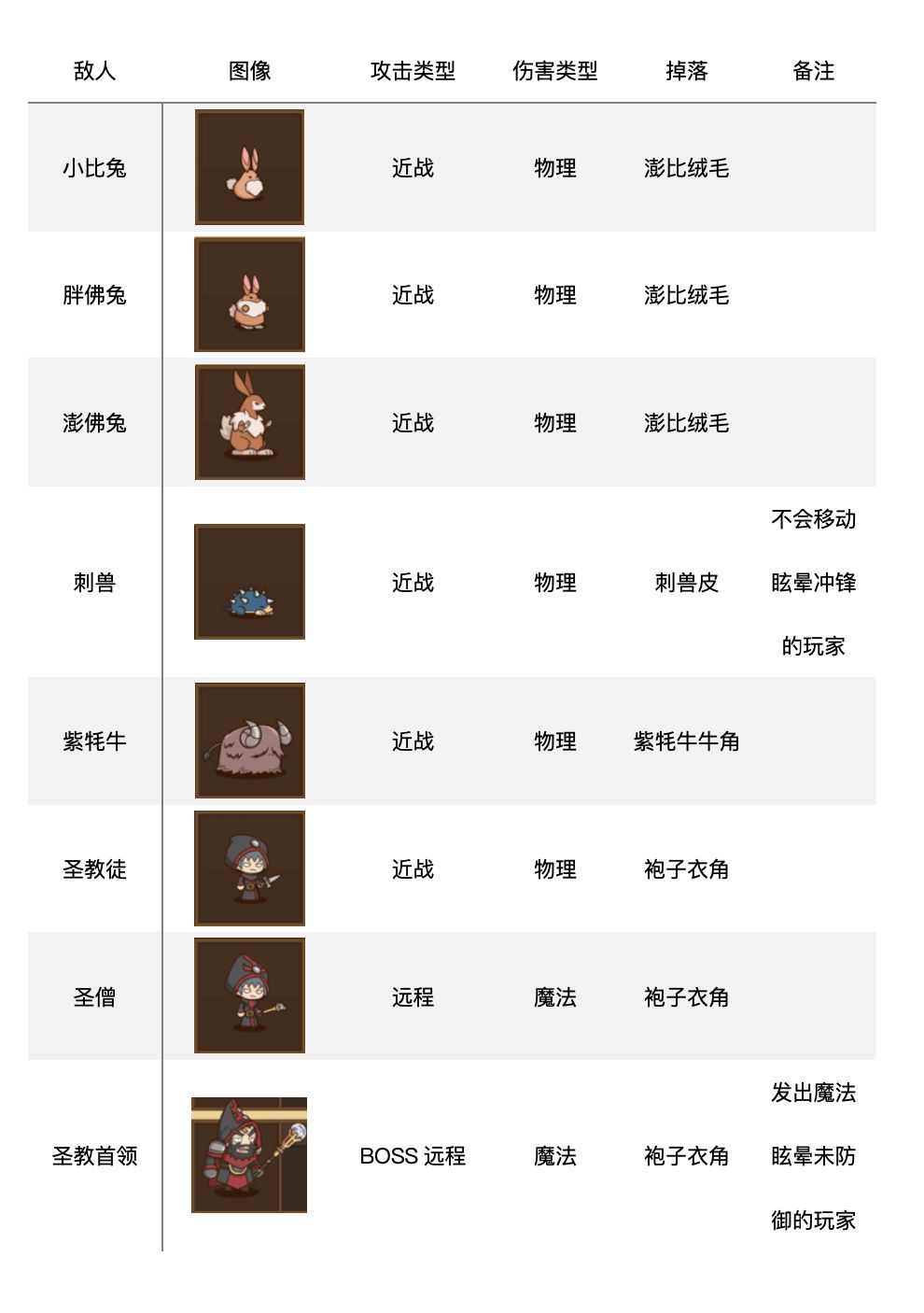 在邮差骑士中有三种主要的敌人:近战、远程和BOSS。近战敌人倾向于走到屏幕的左边,直接对着玩家近距离攻击。远程敌人的特点是不能移动,向左侧的玩家发射物理或魔法炮弹。BOSS是独一无二的,既能移动,也能远程攻击。如果玩家靠近或者伤害他们,AI会让BOSS撤退,向玩家右侧移动。