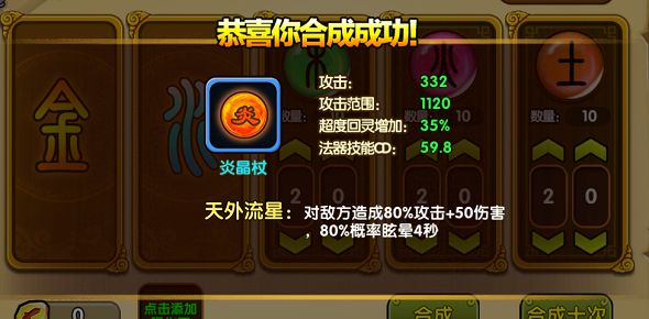 这样的道具共5种,分别对应五行元素,在本“高玩”达到12级的时候,果断根据引导投入法器熔炉中: