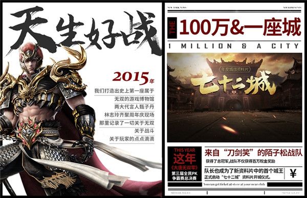 紧随其后的三届全民PK争霸赛,以百万悬赏引爆激情战斗。前所未有的百万现金重赏勇士,2014年的明星经纪人为玩家全程探营助威,2015年的冠军战队获得游戏内独一无二的荣耀——“一座城”,无一不是在让狂野奔放的战斗在大唐无双的世界不断推高。