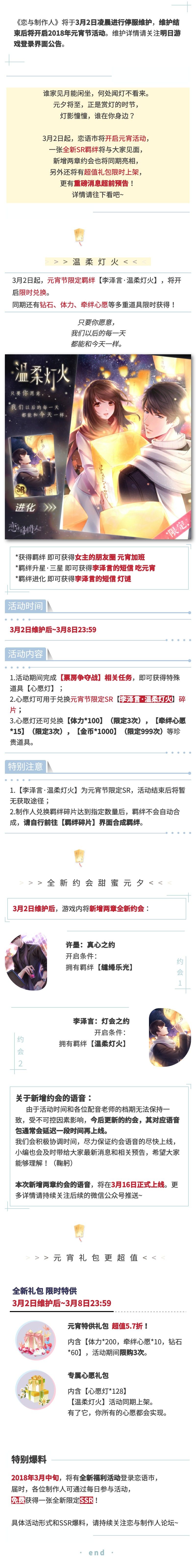 你不能错过的恋与三月——元宵活动曝光!全新约会上线!免费SSR剧透!