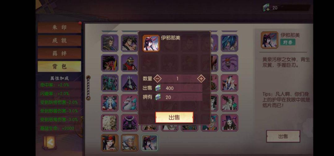 如果除了攻击还想激活独立防御,体质,生命上限,战斗移速等次要羁绊,那么还可以留下:朱雀元婴,朱雀·大日金焰,横岗,九尾狐,鬼王,鸦天狗,络新妇,般若,小般若,大般若,野猪,小野猪,大野猪,女鬼,小鬼,摄魂使,黑衣众,魔化黑衣众,野盗,持盾野盗,淫贼,镰鼬,小鸦天狗,大毛羽,毛羽,大天狗,脆脆鲨。