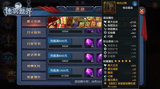 累计充值达到指定额度后,还可领取三阶装备及三阶材料,更有稀有附魔属性装备奖励。想要迅速提升战斗力?快来赢取吧!