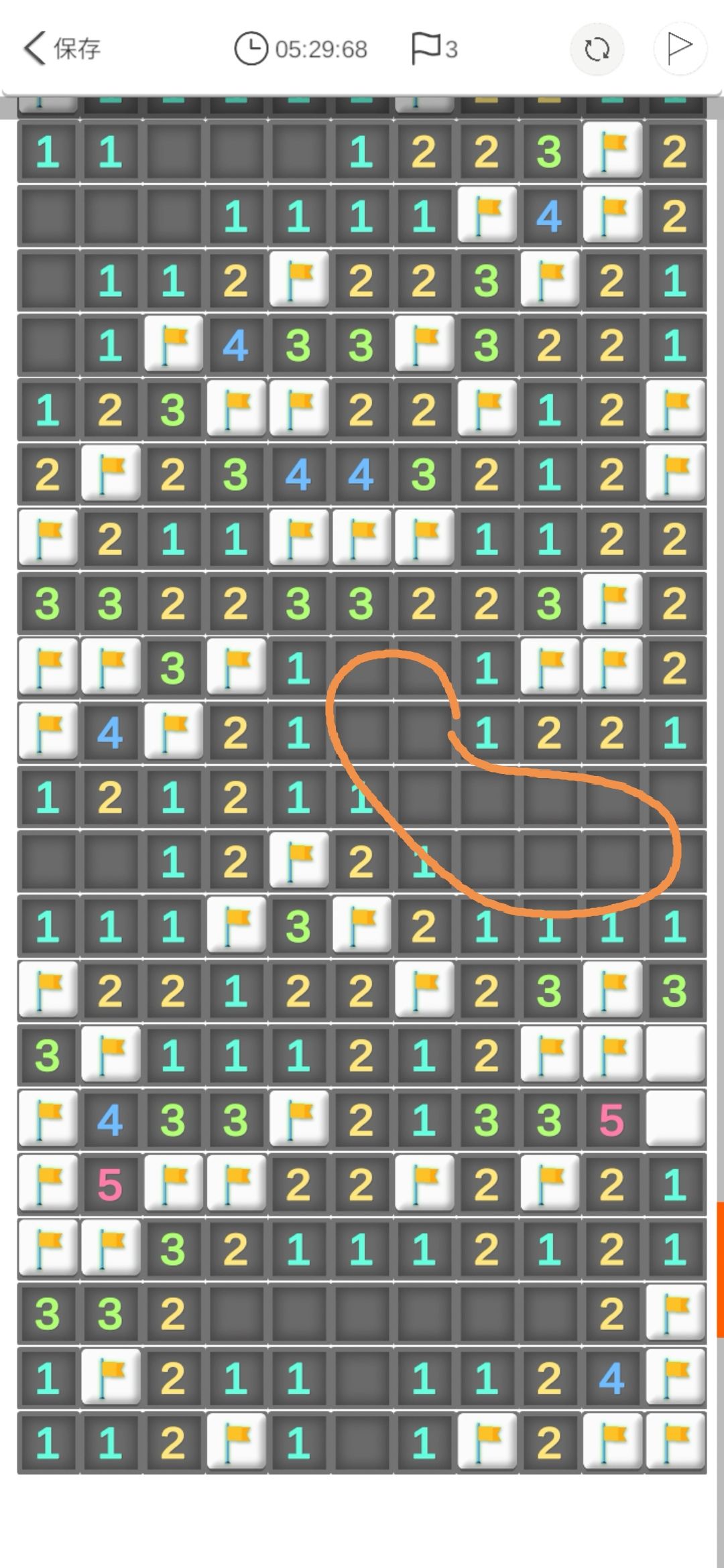 之前很喜欢的一款扫雷在taptap下架了,我又找到了这个,到目前为止,我觉得最舒服的操作方式是点击圈内的区域可以快速切换插旗和排雷,就不存在长按的误触了,毕竟长按这种方式真是太耗时了(就算设置最小还是觉得耗时😂)每次要去右上角切换也是费时间,而且很容易碰到刷新按钮,并且没有任何提醒,直接给你刷了,真是生气啊,希望可以改进吧,现在很期待天梯模式~