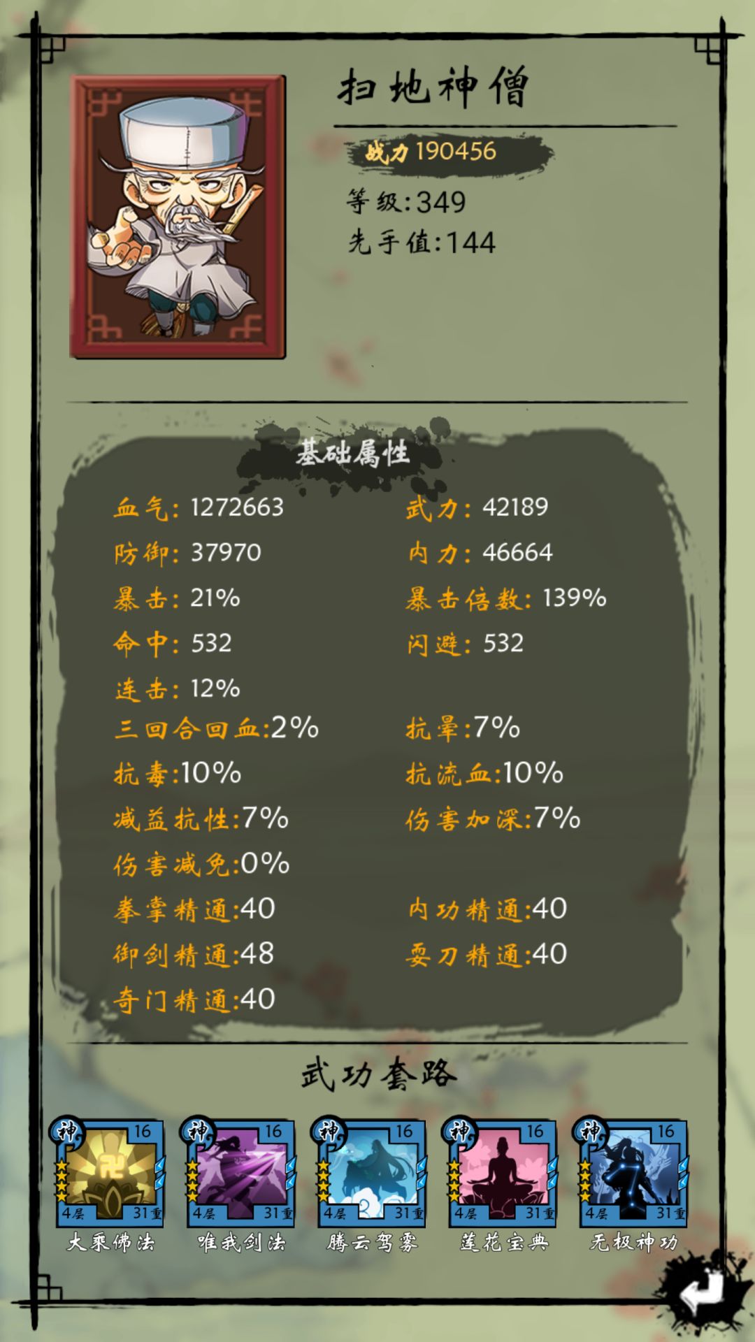 10. 挑战宗师多存点元宝留着打神级技能,大概50w战力留个2w元宝把唯我和莲花搞下来,记住!!!不要隔天,否则元宝就白费,因为每次挑战失败会给你加属性,然后再升升战力少花点元宝把清风肝出来,离神功大成就不远了