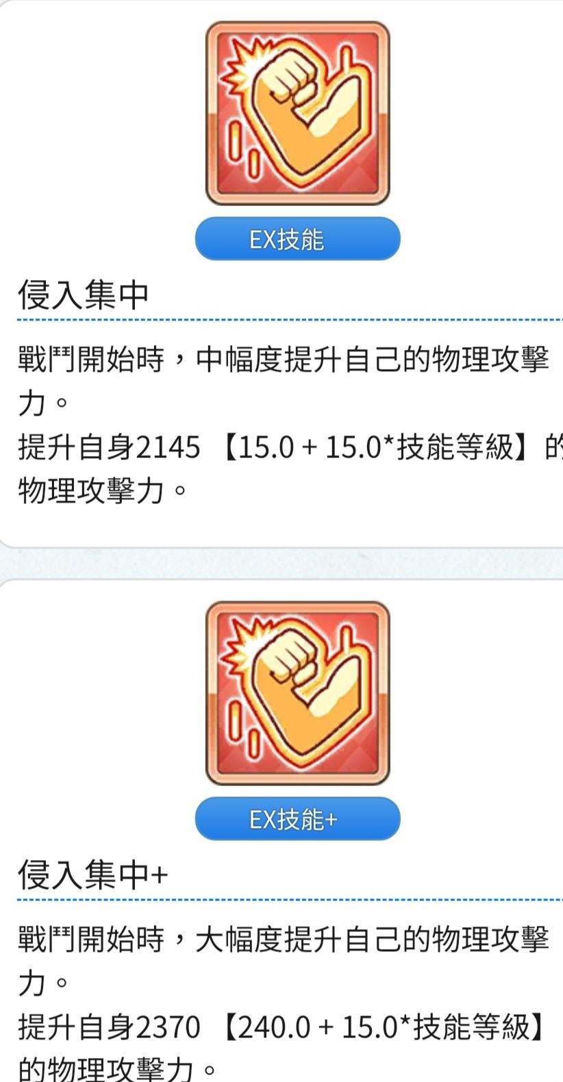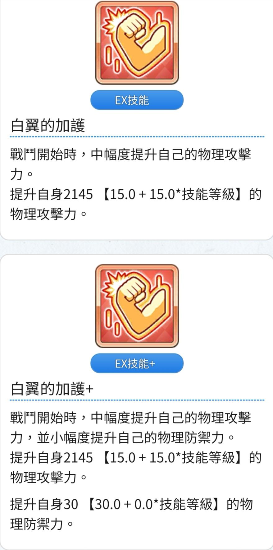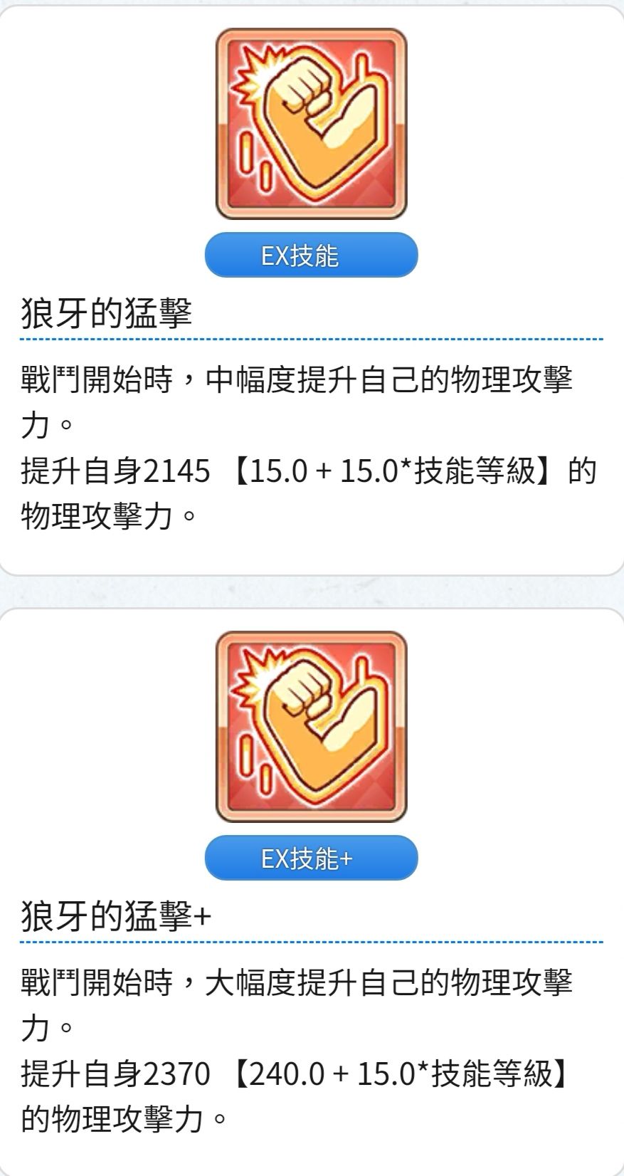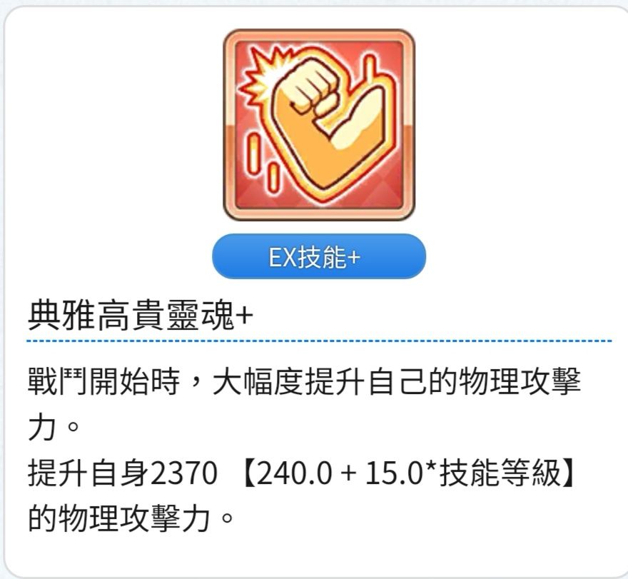 开场时提升自身物理攻击力(EX+后,物理攻击力提升幅度增加)。