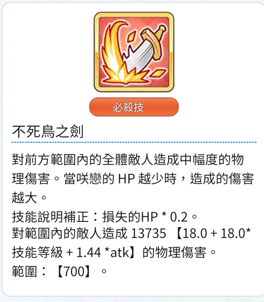 当杏奈生命值低于10%以下时会自动发动。对600范围内的造成伤害但自身无法继续战斗(说白了就是自爆攻击)