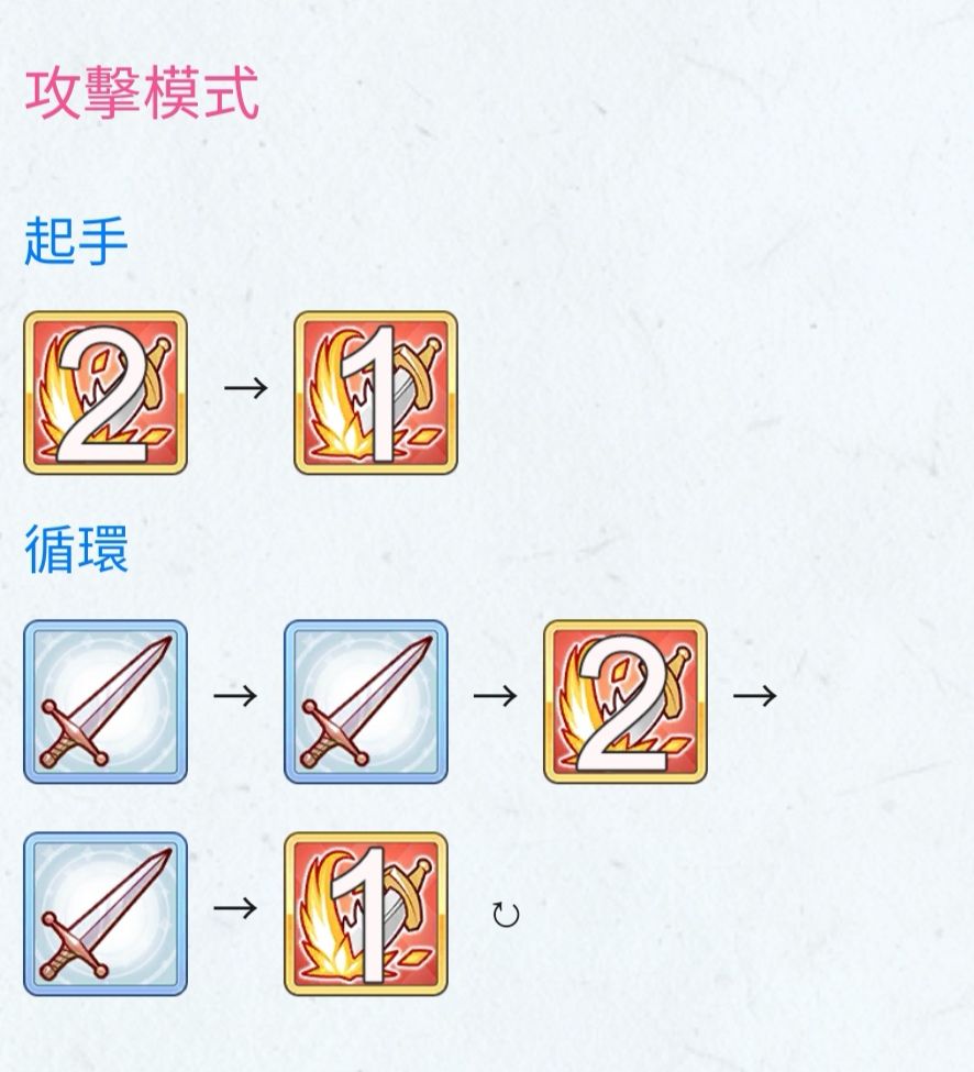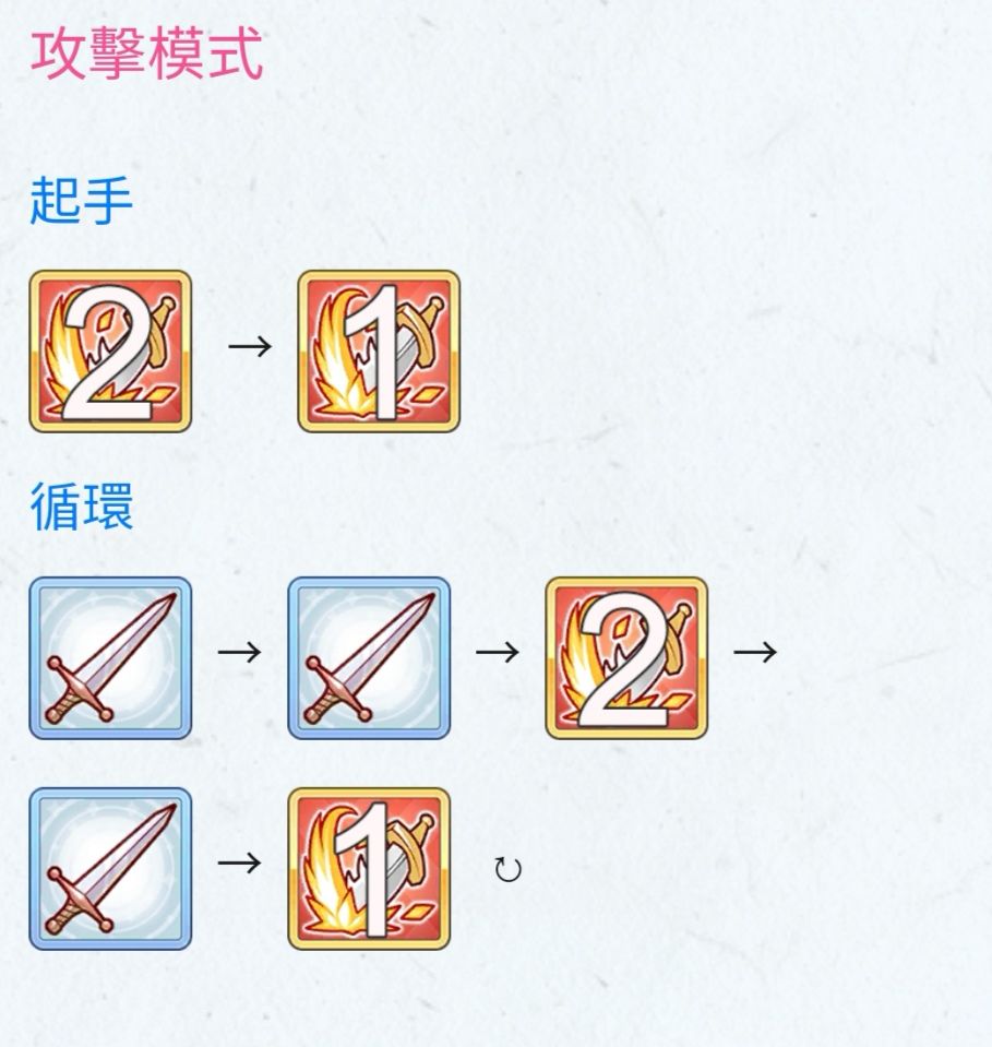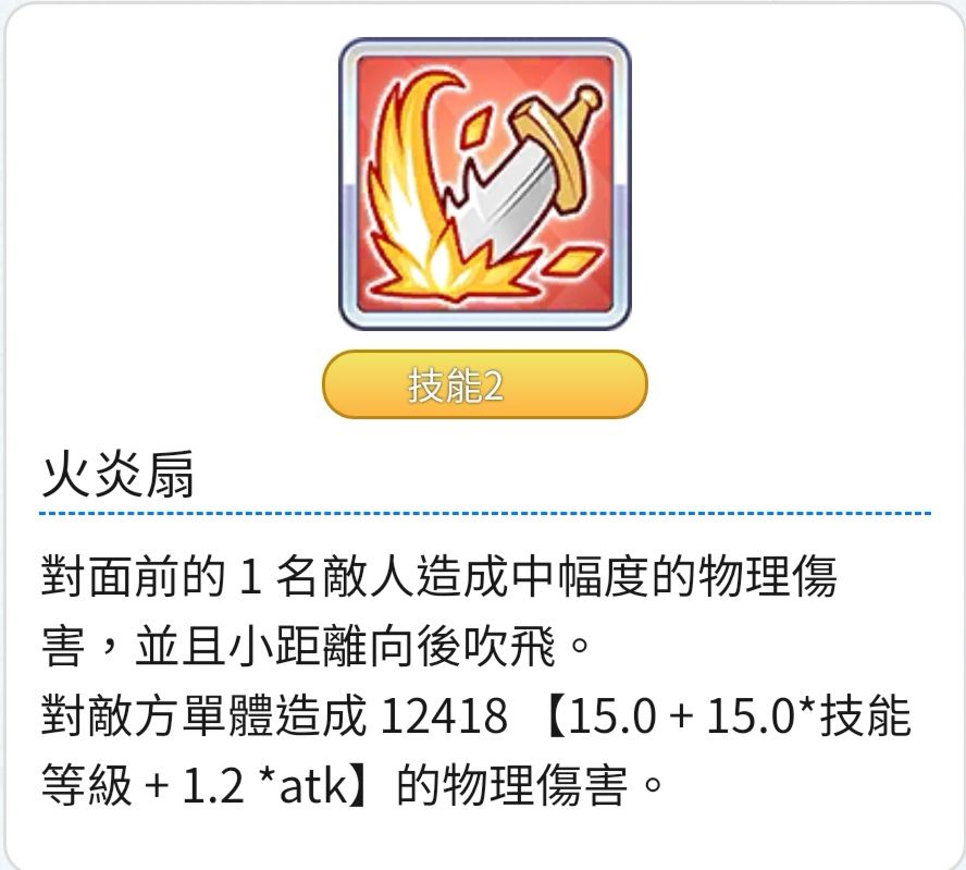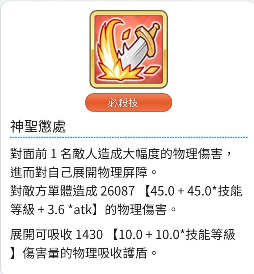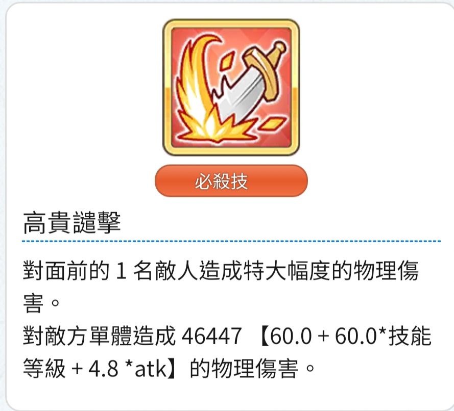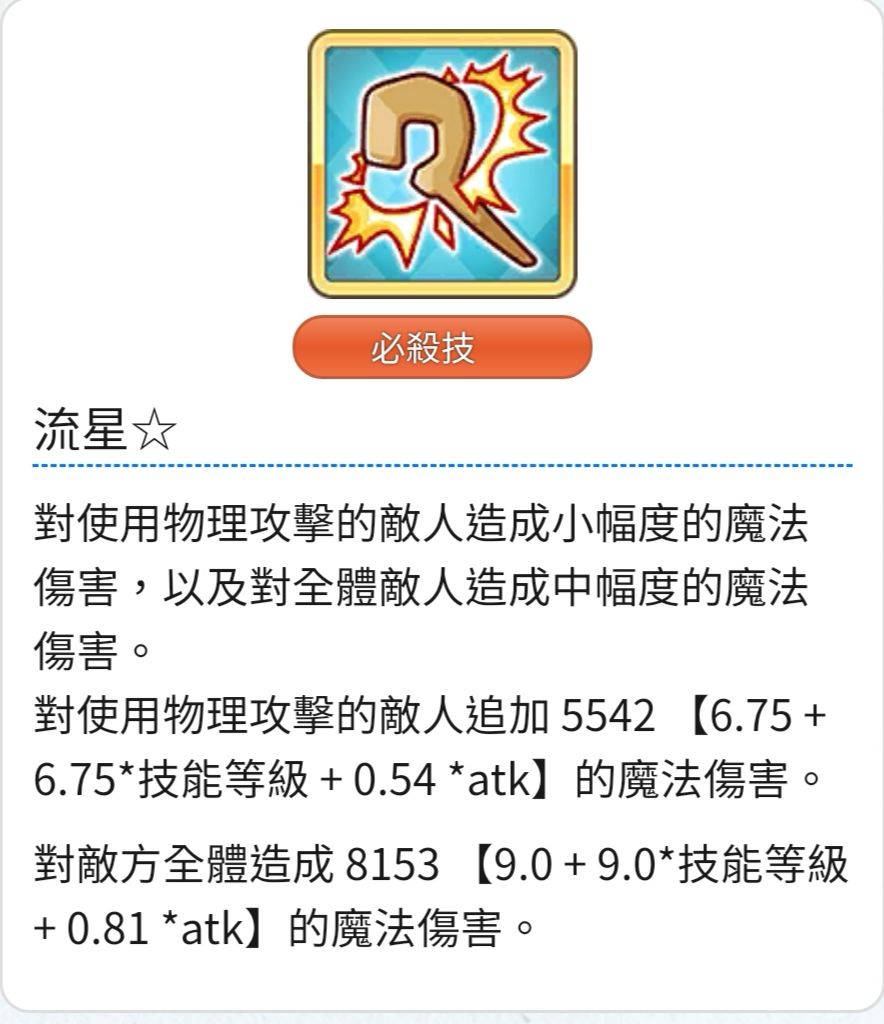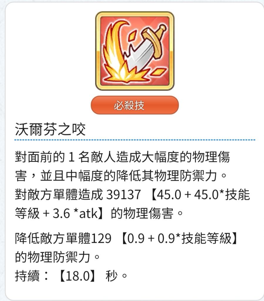 提升我方全体物理与魔方攻击力。并提升我方全体行动速度(1.5倍),每个效果持续20秒。专武强化后,攻击力提升倍率增加,加速2.0倍。