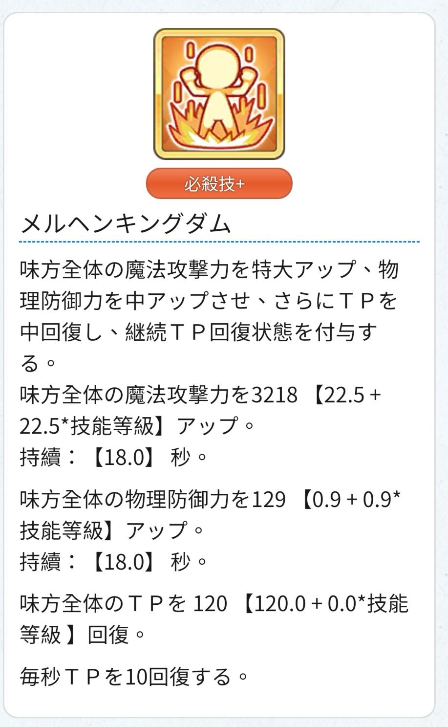为己方单位增加一定魔法攻击力、物理防御并小幅度回复TP。