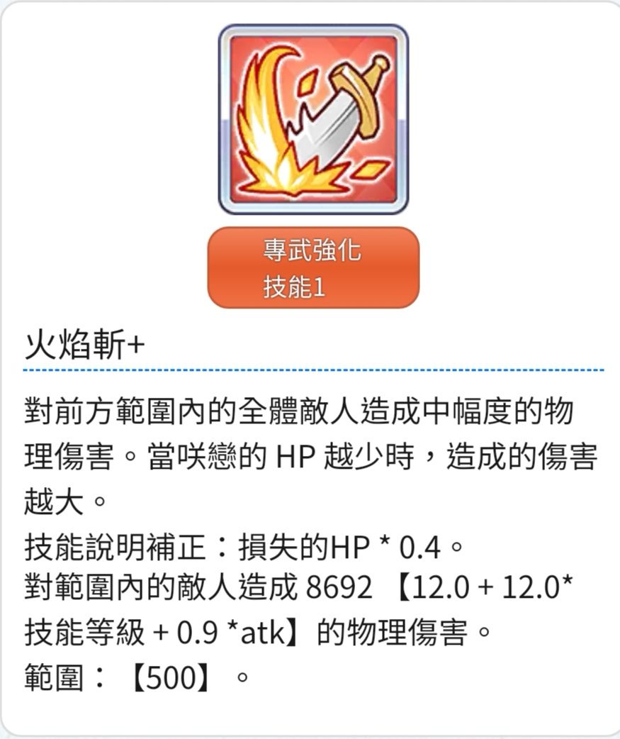 对前方500范围内敌人造成物理伤害(专武强化后增加伤害幅度且hp越低伤害越高)——蛮王确信(ಡωಡ)