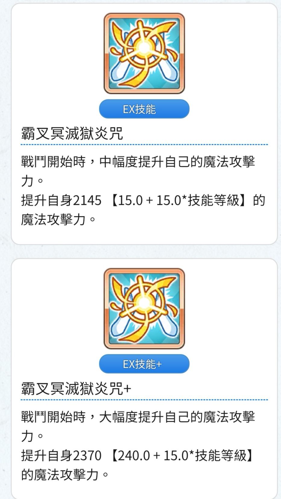 开场时提升自身魔方攻击力(EX+后提升自身魔方防御力)