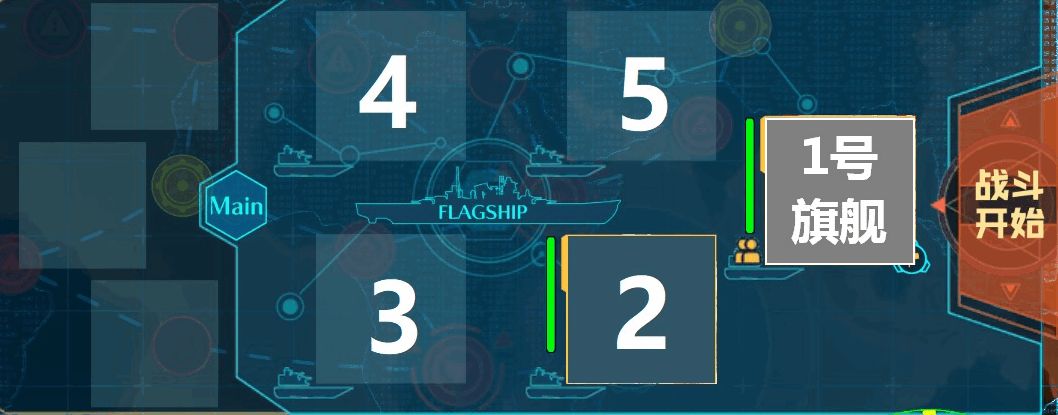 2. 优先行动权:旗舰1号>2号>3号>4号>5号(初始状态就是编队界面从左往右),位置如图:
