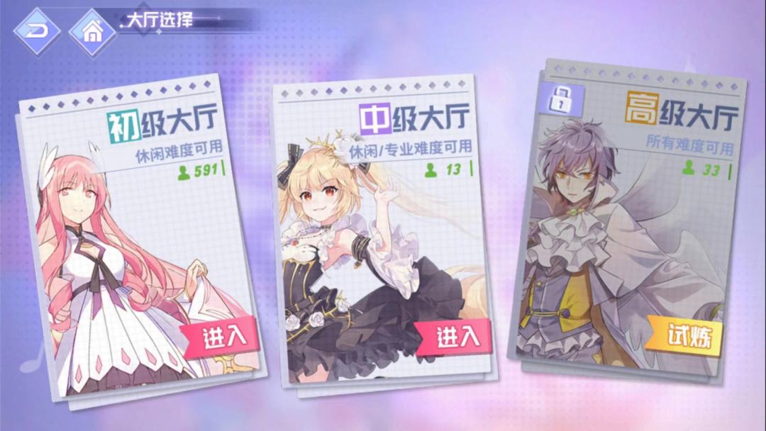 2.高级大厅中可以选择所有难度的歌曲,而初级、中级大厅中只能选择较低难度的歌曲,所以推荐在高级大厅游戏,灵活换歌,省去了切来切去的烦恼。
