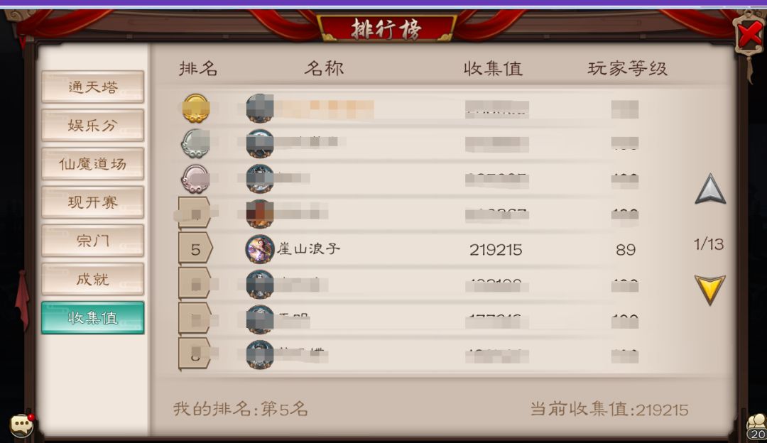 崖山浪子——收集榜排名第五玩家真诚收徒