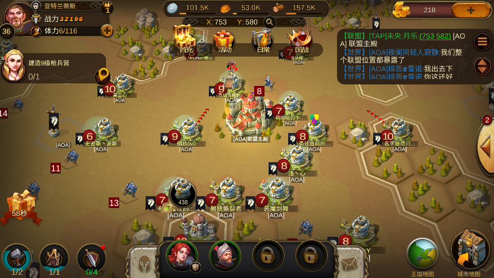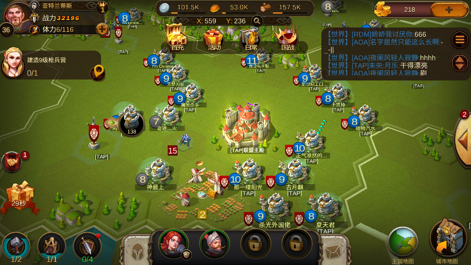 这是我们联盟,主殿已经2级了,发展十分迅速,