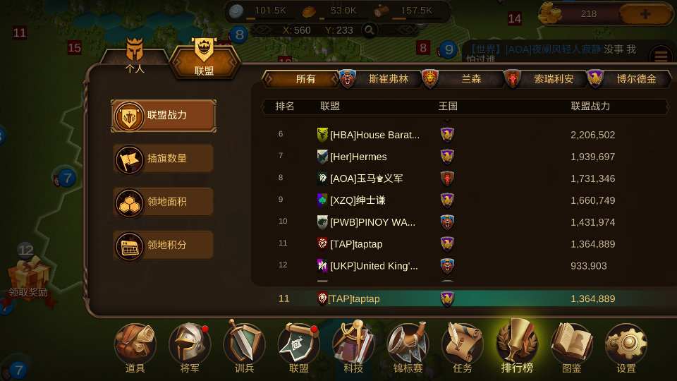 每个国家都有几个外国大联盟,我们taotap玩家自己成立的在南国