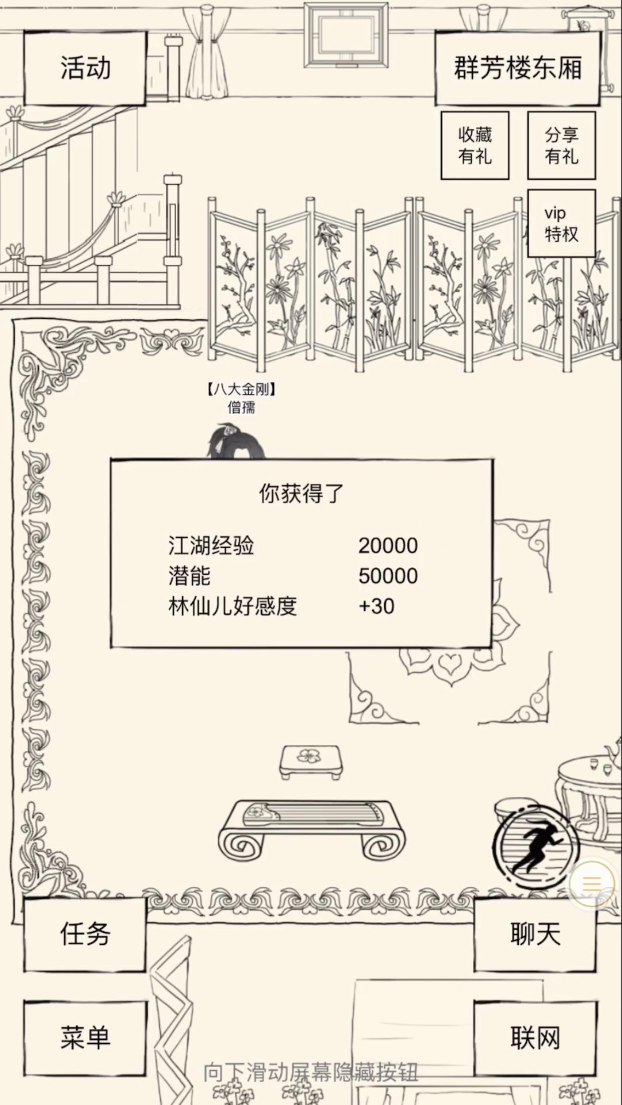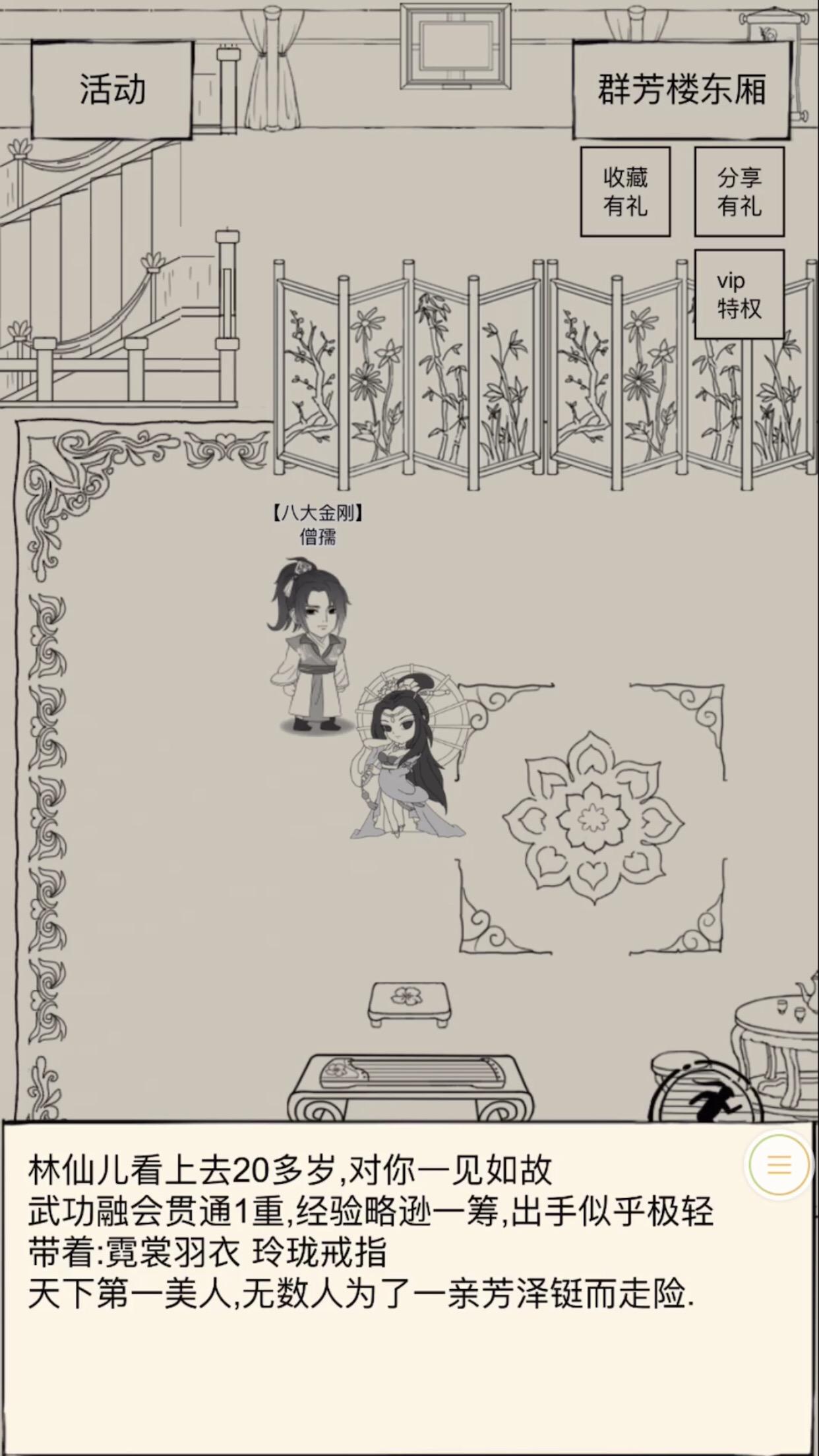 兴致勃勃跑去群芳楼,做完老鸨一系列任务,然后让我去找林仙儿,对话前是这样的