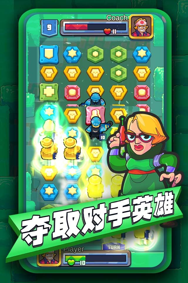 通过消除拼图后创造出的空格可以将敌方的英雄和技能收入囊中,瞬间反制对手,轻轻松松反败为胜!