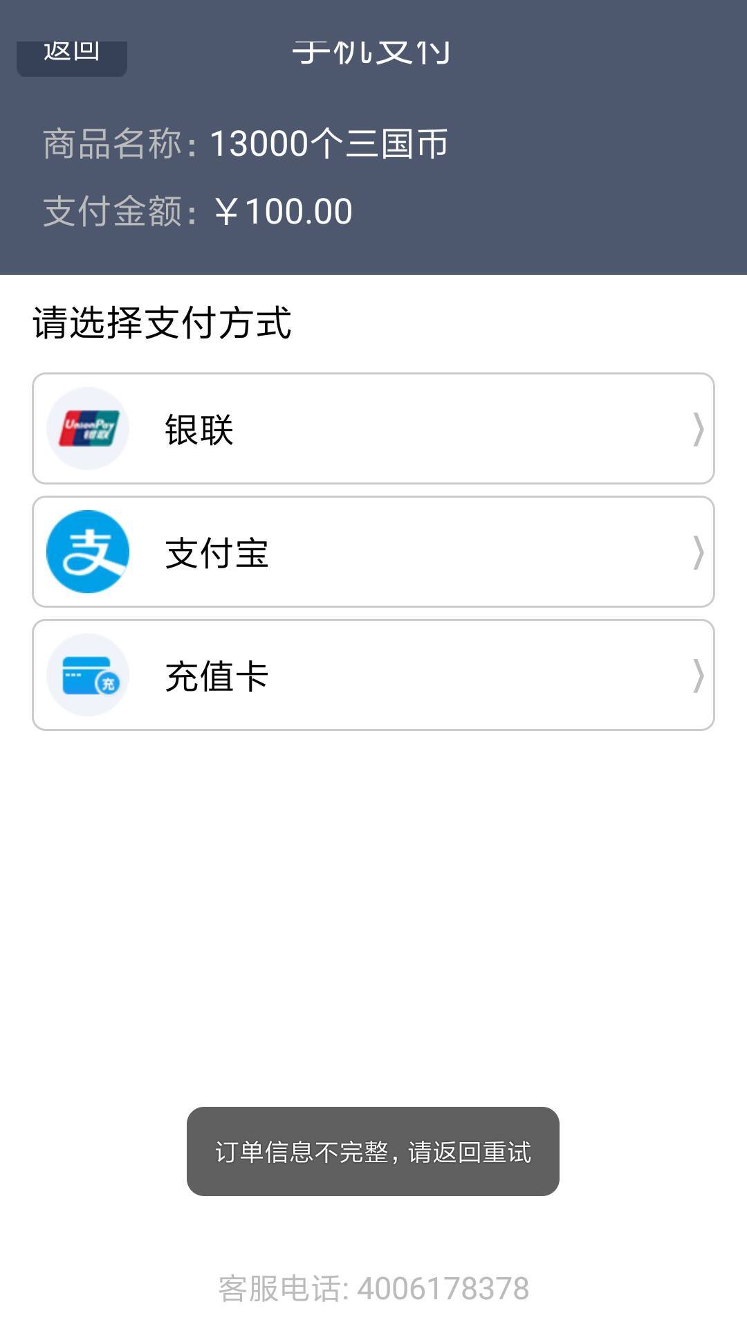 订单信息不完整,请返回重试