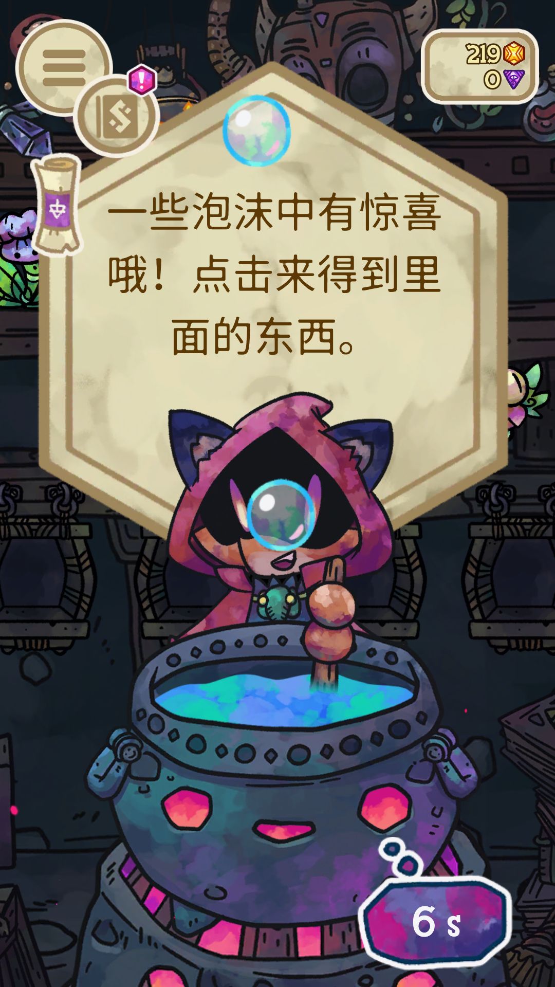 《炼金术》是《小偷猫》开发商的新作,官方还特意为 TapTap 更新了中文版,游戏类型和小偷猫一样都是放置类的,但是这次可没有那么多细思极恐的内容了(也许),在游戏中我们作为一个炼金术师,目的就是把任意两样原料放进一口神奇的大锅里,至于会不会产生新的创造物这一点就要看你的造化了,搞不好会变成石头呢。这个玩法有点像《涂鸦上帝》不过这游戏的画风可真是萌的不行,根据前作小偷猫就可以看出来,制作组对这种萌萌的画风把控能力真是强的不行。