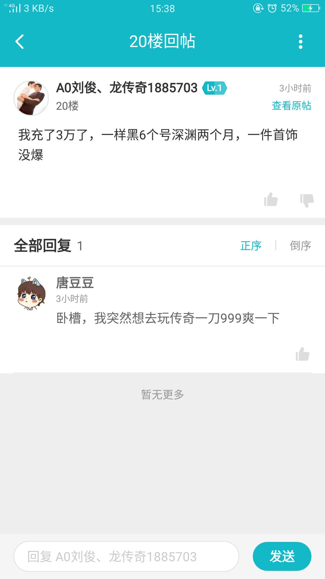 最后,有需要的可以冲个2000拿个豪客称号,不过看了属性,如果没有更新更好的属性,请就冲54块养老。3个月完成。刚好6月份更新下个版本,你们装备也刚好毕业。