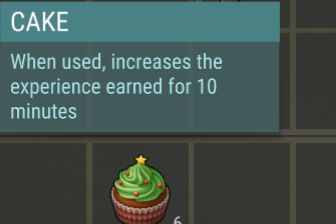 蛋糕:使用时增加经验每秒,(持续10分钟)