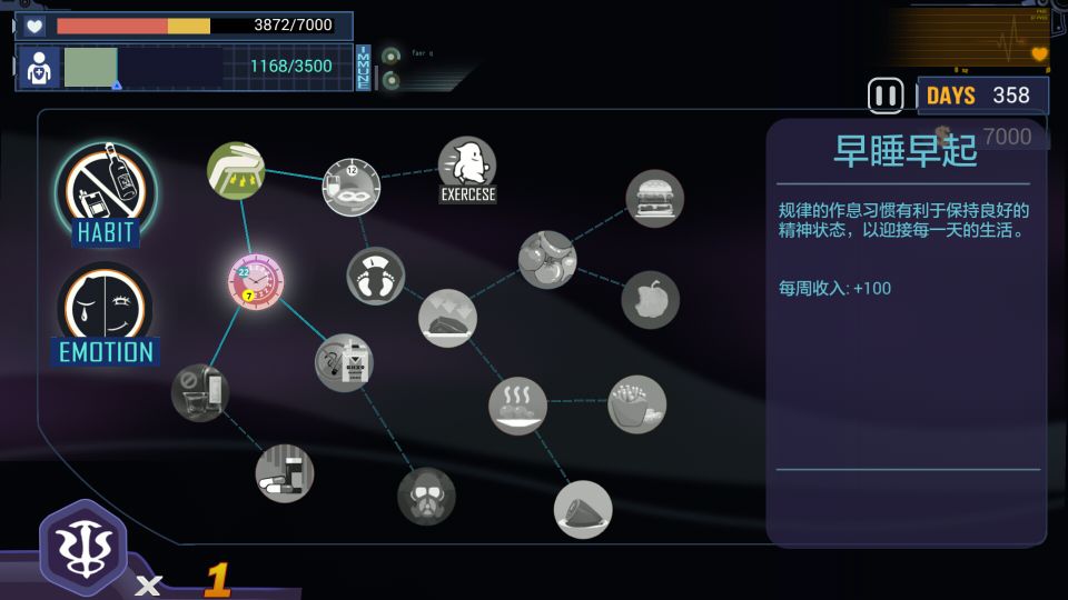 心理这方面,开局立马点出心态和饮食,最近的两个增加工资。没有钱,后续治疗都是扯淡,最多两轮,你就没钱吃药了。