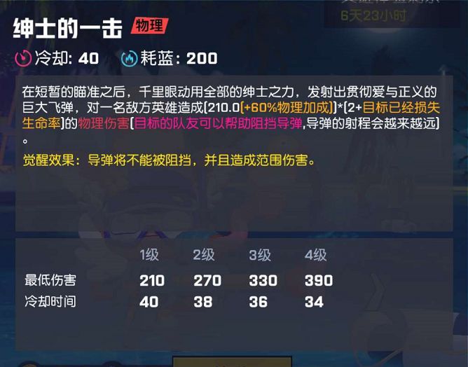 抢人头神技,射程很远,伤害也不错。觉醒之后不能被阻挡而且还是AOE,很强势。